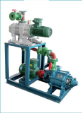 - FJZJS系列防腐型羅茨水環(huán)式成套真空機組是由羅茨泵(又稱機械增壓泵)為主泵(包括中間),水環(huán)泵為前級泵組成的機組,產(chǎn)品極限真空度高(一級羅茨泵極限真空可達150pa,二級羅茨極限真空可達25pa,三級羅茨極限真空可達1pa)。并可按用戶要求另行設計多級成套機組,以適應更高使用領域。有防腐型和不防腐型可供選擇。 該產(chǎn)品可用于抽送空氣、不含固體顆粒的腐蝕性氣體,亦可用于真空輸送各種懸浮顆;蚪Y晶的有機或無機酸液(除次氯酸、氫氟酸除外),以便在密閉容器中獲得較高真空。 產(chǎn)品類別:真空設備 性能數(shù)據(jù) 抽速范圍(m3/h) 108-2160 極限壓力(Pa) 150-25 介質(zhì)溫度 環(huán)境溫度 最高工作壓力 電機數(shù)據(jù) 配套電機功率(kW) 7.7-22 電壓(V) 380 頻率(Hz) 50 轉數(shù)(r/min) 1450-2900 防護等級 IP55 絕緣等級 Y 材料 泵體、泵蓋、葉輪 泵軸 機械密封 型號說明 F J ZJ S-150-70-3 F--防腐蝕 J--機組代號 ZJ--主泵(羅茨泵)代號 S--前級泵(水環(huán)泵)代號 150--主泵(羅茨泵)抽速 70--中間泵(羅茨泵)抽速 3--前級泵(水環(huán)泵)抽速