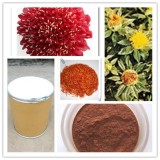- 紅花提取物【英文或拉丁名】:Safflower Extract 【產(chǎn)品規(guī)格】:2%carthamin 【包裝規(guī)格】:25kg/紙板桶 【產(chǎn)品介紹】:為菊科植物紅花Carthamus tinctorius L.的管狀花的紅棕色粉末狀提取物產(chǎn)品。 【備注】: 植物形態(tài) 形態(tài) 一年生草本,高約1m。莖直立,上部多分枝。葉長橢圓形,先端尖,無柄,基部抱莖,邊緣羽狀齒裂,齒端有尖刺,兩面無毛;上部葉較小,成苞片狀圍繞狀狀花序。頭狀花序頂生,排成傘房狀;總苞片數(shù)層,外層綠色,卵狀披針形,邊緣具尖刺,內(nèi)層卵狀橢圓形,白色,膜質(zhì);全為管狀花,初開時黃色,后轉(zhuǎn)橙紅色;瘦果橢圓形,長約5爉m,無冠毛,或鱗片狀;ㄆ5-7月,果期7-9月。 全國各地均有栽培。 采制 夏季花橙紅時采摘,陰干、曬干或烘干。 性狀 管狀花長1-2cm,表面紅黃色或紅色;花冠筒細長,先端5裂,裂片狹條形,長5-8mm;雄蕊5,花藥聚合成筒狀,共同白色;柱頭細長圓柱形,頂端微分叉。質(zhì)柔軟。氣微香,味微苦。 性味 性溫,味辛。 來源:http://www.shxchangyue.com/product_detail1_cn/id/120.html