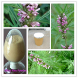 - 益母草提取物 【英文或拉丁名】:Motherwort Herb Extract 【產(chǎn)品規(guī)格】:4%stachydrine 【包裝規(guī)格】:25kg/紙板桶 【產(chǎn)品介紹】:為唇形科植物益母草Leonurus heterophyllus Sweet的地上部分的黃色粉末狀提取物產(chǎn)品。 【化學(xué)成分】:全草含益母草堿(leonurine)、水蘇堿(stachydrine)蕓香甙、延胡索酸,另含益母草堿甲、乙等;花含益母草定堿(leonuridine)。 【備注】: 植物形態(tài) 一年生或二年生草本,高0.3-1.8cm。莖方形,有倒生白毛。根出葉近圓形,葉緣5-9淺裂,有長柄;中部葉掌狀3深裂,側(cè)裂片有1-2小裂;花 序上的葉線狀披針形,全緣或有少數(shù)牙齒,最小裂片寬3mm以上。輪傘花序腋生,有花8-15,多數(shù)遠(yuǎn)離而組成長穗狀花序;小苞片針形,短于萼筒,有細(xì)毛;花萼鐘形,外有毛,5齒裂,前2齒靠合;花冠淡紅色或紫紅色,2唇形,冠筒內(nèi)有毛環(huán),上唇外面有毛,全緣,下唇3裂,中裂片倒心形;雄蕊4,二強(qiáng),花絲被鱗毛。小堅(jiān)果長圓狀三棱形,平滑;ㄆ6-9月,果期9-10月。 生于路邊、荒地。產(chǎn)全國大部分地區(qū)。 采制 夏季莖葉茂盛、花未開時采割,曬干,或切段曬干。 性味 性微寒,味苦、辛。 益母草的別名:野麻,九塔花,山麻,紅花文。 來源:為唇形科植物益母草的地上部分。 產(chǎn)地:生于路邊,荒地,產(chǎn)全國大部分地區(qū)。 化學(xué)成分:全草含益母草堿,水蘇堿,蕓香甙,延胡素酸,另含益母草堿甲,乙等;花含益母草定堿。 性味:性寒,味苦、辛。 主治功能:活血調(diào)經(jīng),利尿消腫。用于月經(jīng)不調(diào),痛經(jīng),經(jīng)閉,惡露不盡,水腫尿少,急性腎炎水腫等。 我們公司提供10:1的 產(chǎn)品顏色:棕黃色